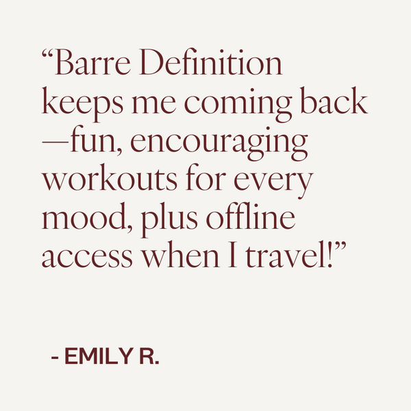 No more dragging yourself to the gym or forcing workouts you hate. Barre Definition is your graceful escape from the grind — with ballet-inspired movement that makes you feel strong, feminine, and actually excited to press play.