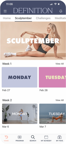 Each month, you get a new workout challenge with a weekly schedule, just open the app and press play. Want variety? Browse our huge on-demand library by time, style, level, body part, and more.