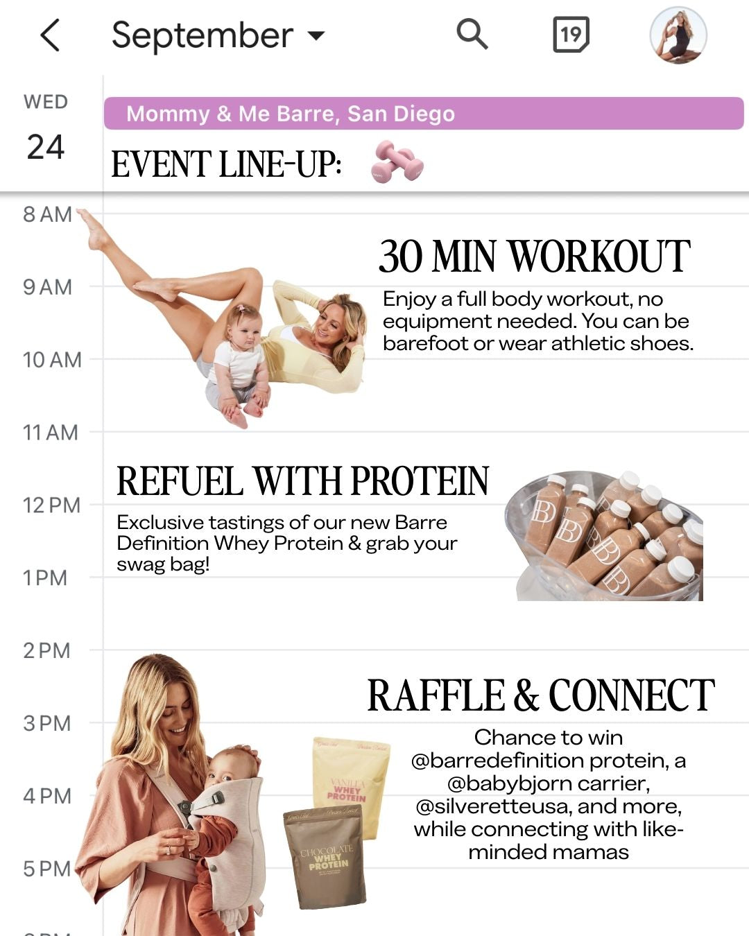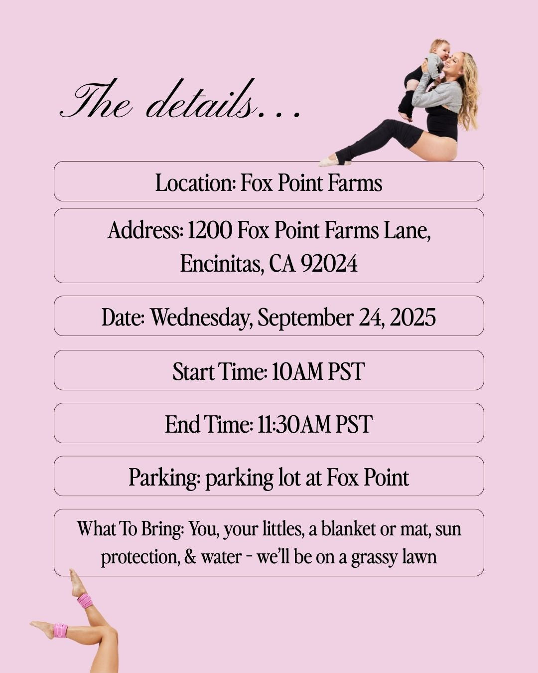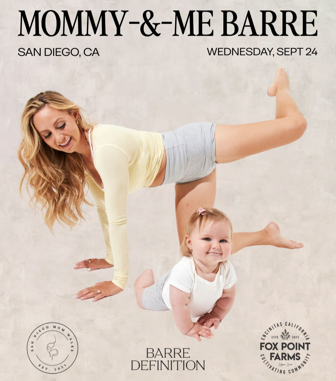 Calling all San Diego mamas and mamas-to-be! Bring yourself and your littles for a 30 minute Mommy-and-Me Barre Workout on the lawn of Fox Point Farms, taught by Action Jacquelyn, founder of Barre Definition. Join together in community to celebrate the beauty of motherhood, and the launch of Barre Definition’s Whey Protein and Collagen Powder. We will be serving protein shakes after the class to refuel!